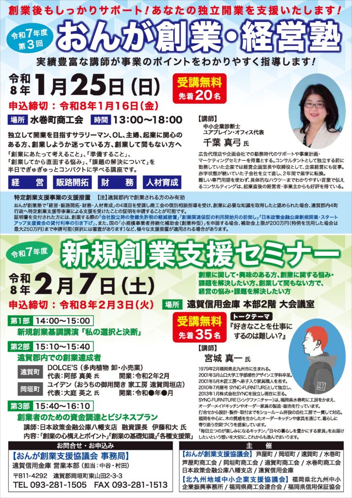 - 令和7年度おんが創業・経営塾、セミナーの第3回受付を開始しました。